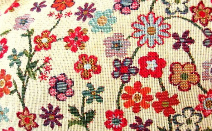 カラフルな花柄がとてもかわいらしい、スペイン製のゴブラン織り生地を使っています。