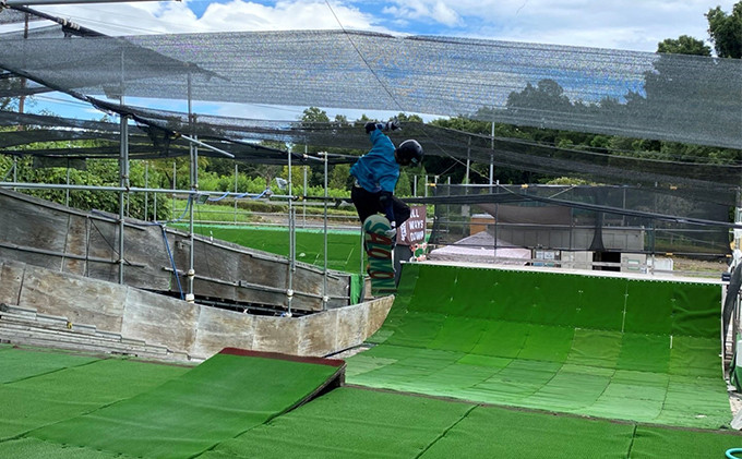 埼玉県鳩山町にある、雪のない人工芝型の屋外スノーボード練習場です。スキー場で起こりうるリスクもなく安全にウィンタースポーツをお楽しみ頂けます。