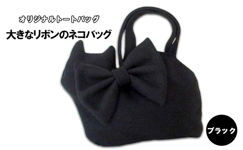 オリジナルトートバッグ*大きなリボンのネコバッグ ブラック