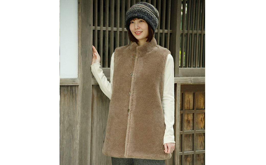 リバーシブル仕立てのふわふわベスト 羊毛で暖かい「メリノン」ロングベスト(Mサイズ)| 羊毛 ウール 洗えるウール タクトコーポレーション 埼玉県 横瀬町
