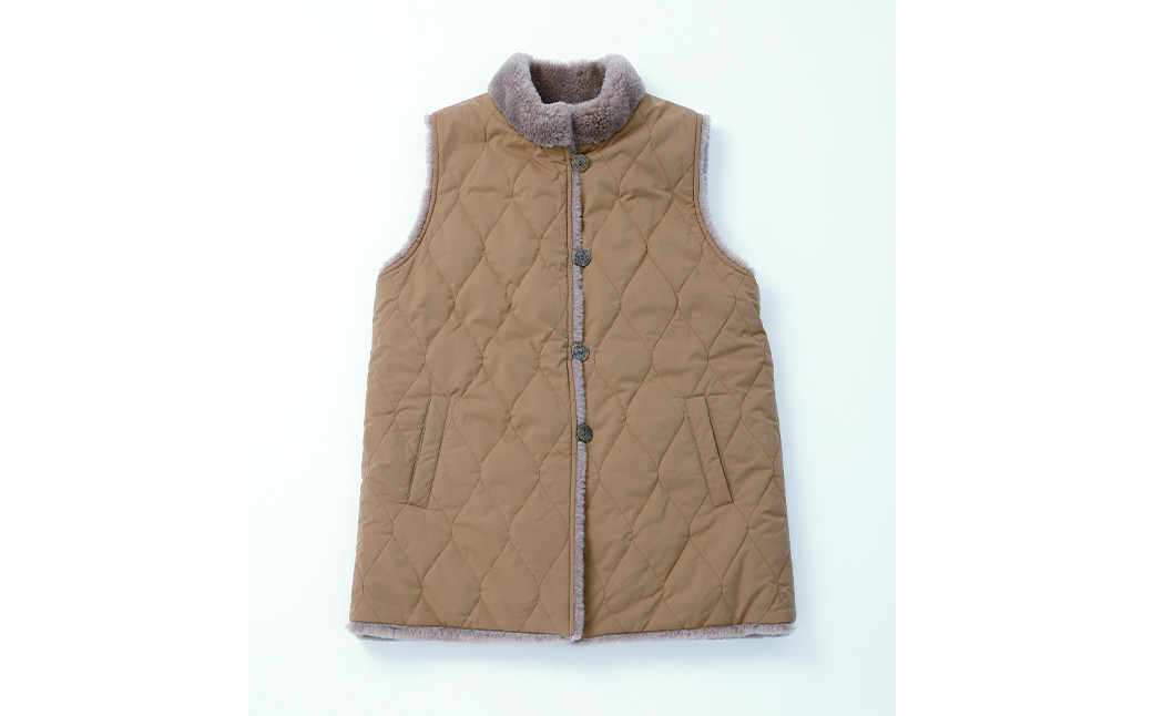 リバーシブル仕立てのふわふわベスト 羊毛で暖かい「メリノン」ロングベスト【洗濯機で丸洗い可!】