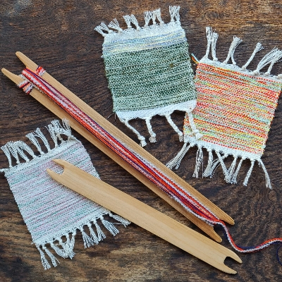 『コースターはた織り体験』は、簡易的なはた織り機を使い、自分で選んだ色のよこ糸で自分だけのオリジナルコースターを織る体験コースです。