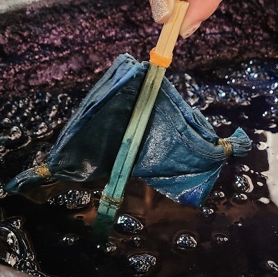 こちらの体験コースはハンカチを割り箸や輪ゴムでくくって『長瀞藍染』で染める藍染め体験となっております。