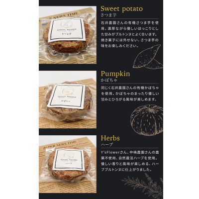 | 容量 | ■お礼品の内容について ・ファーマーズブルトンヌ〈さつまいも〉[(約5cm×1cm)×3個] 原産地:埼玉県上里町/製造地:埼玉県上里町 賞味期限:製造日から7日 ・ファーマーズブルトンヌ〈かぼちゃ〉[(約5cm×1cm)×3個] 原産地:埼玉県上里町/製造地:埼玉県上里町 賞味期限:製造日から7日 ・ファーマーズブルトンヌ〈ハーブ〉[(約5cm×1cm)×3個] 原産地:埼玉県上里町/製造地:埼玉県上里町 賞味期限:製造日から7日 ■原材料・成分 〈さつまいも〉バター、小麦粉、アーモンドプードル、さつまいも、グラニュー糖、卵、ベーキングパウダー 〈かぼちゃ〉バター、小麦粉、アーモンドプードル、かぼちゃ、グラニュー糖、卵、ベーキングパウダー 〈ハーブ〉バター、小麦粉、アーモンドプードル、グラニュー糖、卵、ローズマリー、セージ、バジル、シナモン、ナツメグ、クローブ、レモン、ベーキングパウダー 【原材料の一部に、乳、小麦、アーモンド、卵を含む。】 |