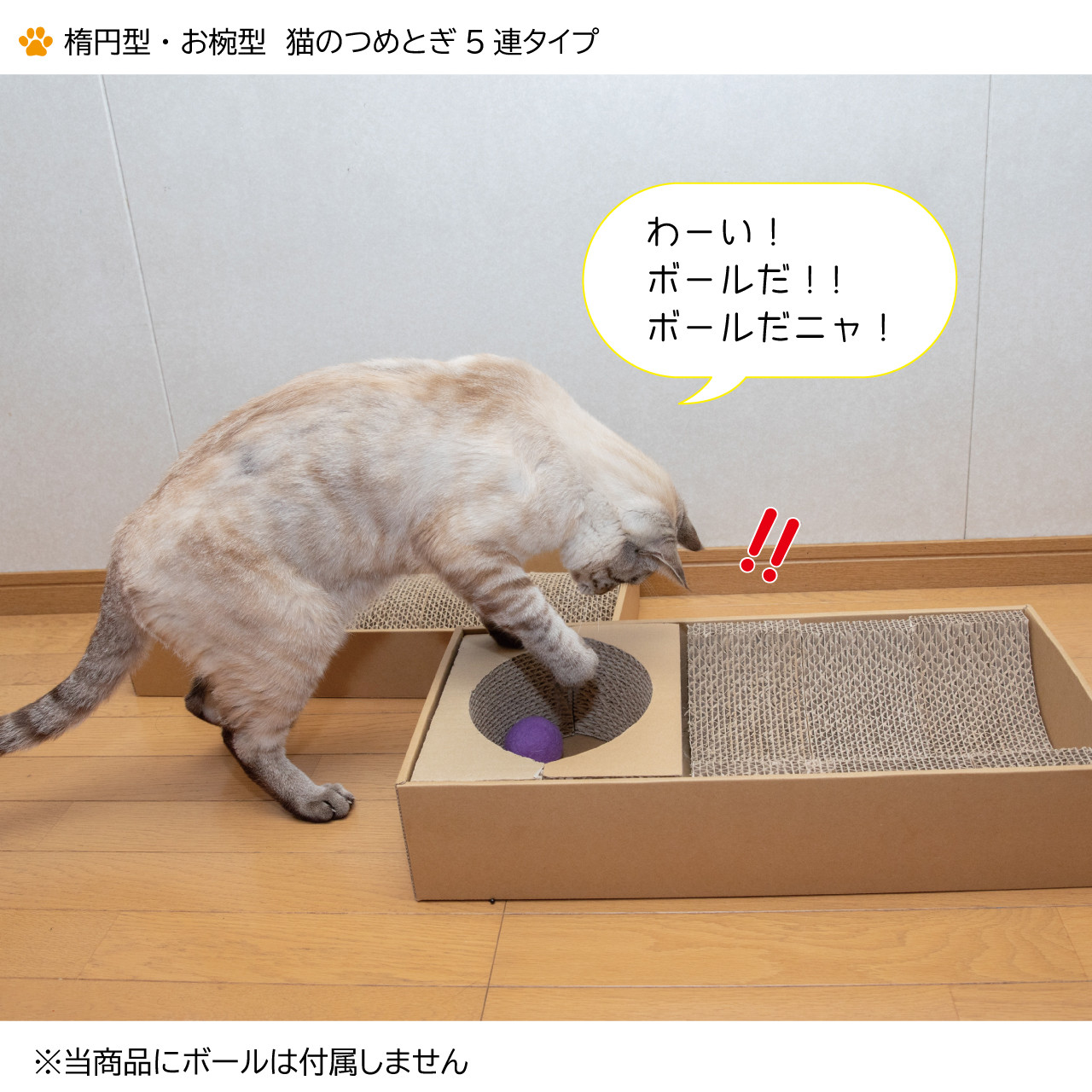 ・4分割の楕円型と4分割のお椀型の2種類セットと5分割の楕円型と5分割のお椀型の2種類セット入り。 ・楕円型とお椀型それぞれ専用のフレーム付き。(お椀型のフレームはお客様で組み立てとなります。※組立要領書付き) ・4分割、5分割でいろんな「カタチ」にカスタマイズ可能!つめとぎ、遊具、やすらぎの場など、猫ちゃんがよろこぶカタチを一緒に探してみよう! ・安心の国産。(自社製造) 【4連タイプ製品サイズ】 楕円型:約390×250×97(単位:mm) お椀型:約390×205×75(単位:mm) 【5連タイプ製品サイズ】 楕円型:約505×250×100(単位:mm) お椀型:約505×205×75(単位:mm) ※またたびは付いておりません。 ※配送不可地域:沖縄・離島 【提供事業者】日本セキソー株式会社