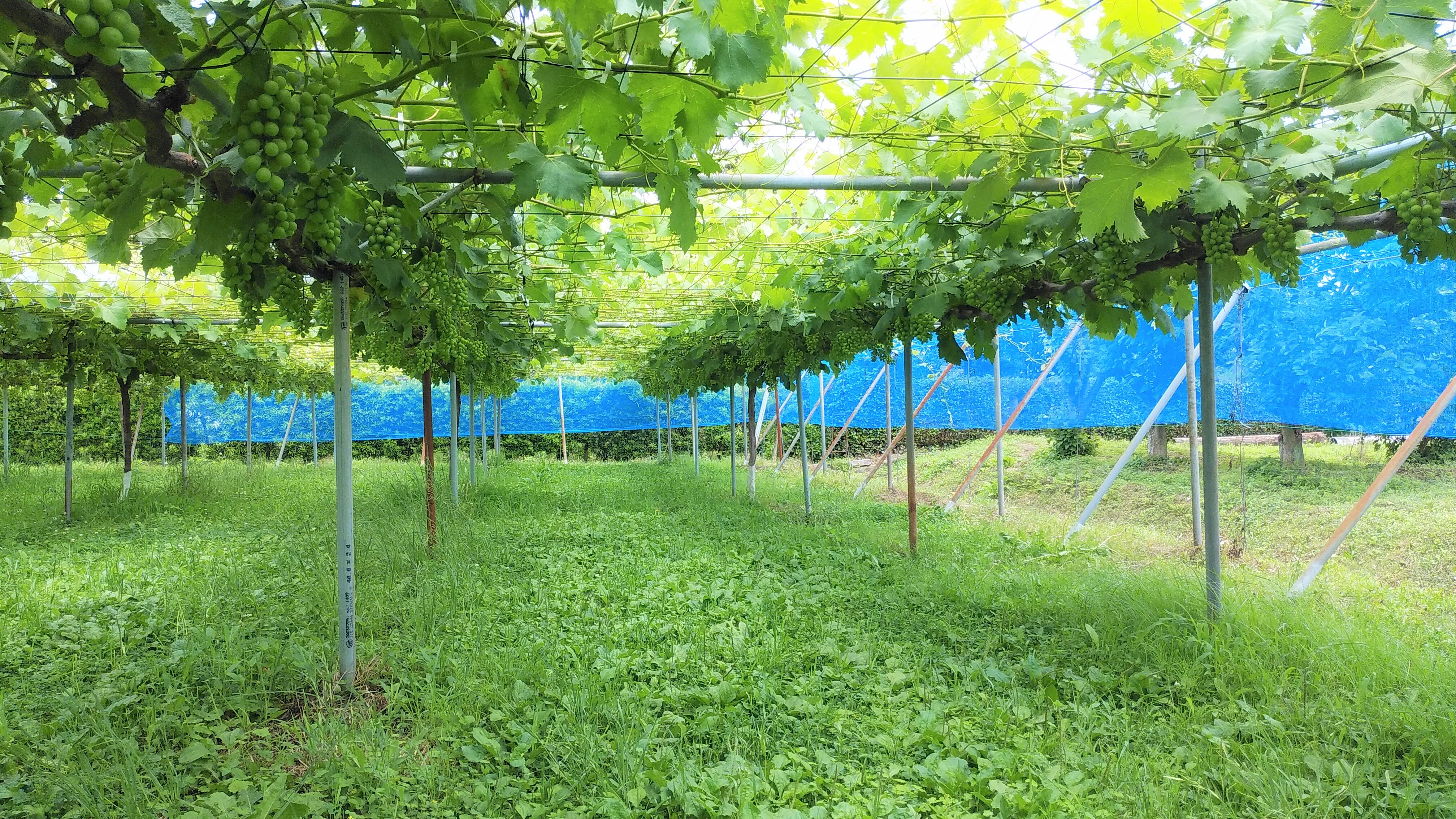 草を刈らなければならないので手間はかかりますが、その分、おいしいぶどうが育ちます。