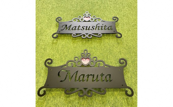 ハートのティアラを冠した。プレート型でアルミ製のネームプレートです。