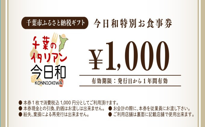 今日和プレミアムお食事券(5,000円分)【 お食事券 チケット パスタ おいしい 千葉 フードロス レストラン 】[№5346-0105]