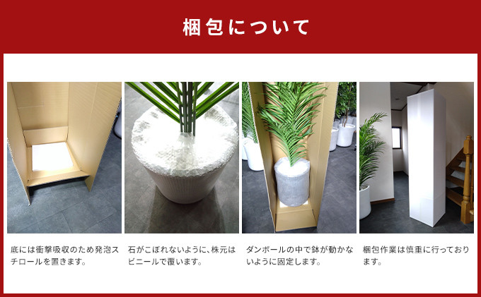 | 容量 | 素材:植物部分/プラスチック 鉢/ファイバークレイ製 飾り石/天然石 商品の高さ:約170cm 鉢のサイズ:幅37cm×奥行37cm×高さ46cm |