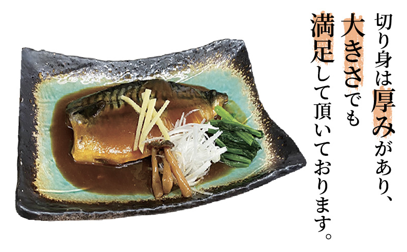 切り身は厚みがあり、大きさでも満足して頂いております。秘伝のタレを絡ませたさば味噌煮を是非ご賞味下さいませ!