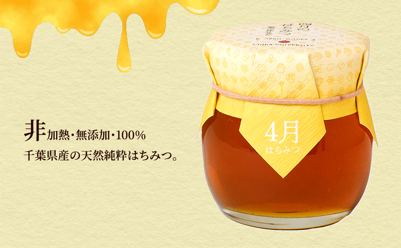 | 容量 | ・西千葉キャンパス産はちみつ(4月、5月、6月、7月) 各110g 計4個 化粧箱入り |