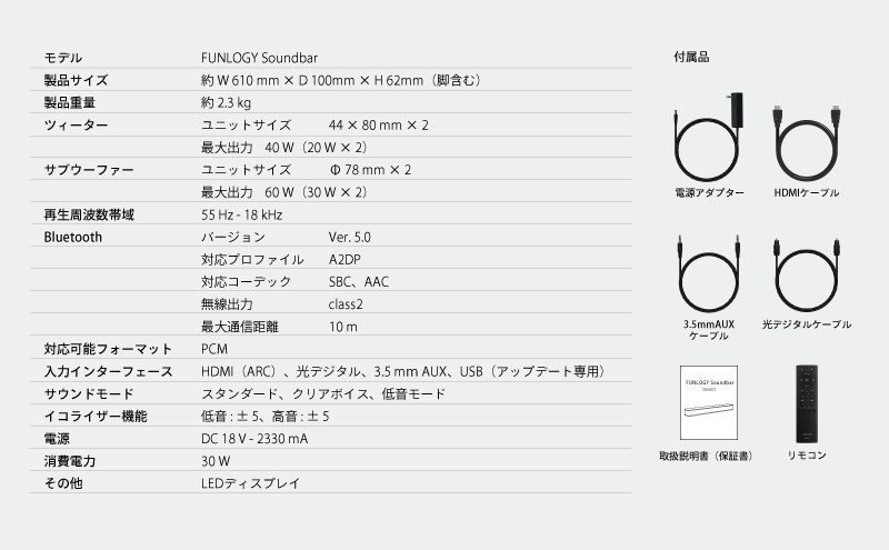 ※接続方法、詳細内容、その他の問い合わせは「FUNLOGY Soundbarよくある質問」を検索してご確認下さい。