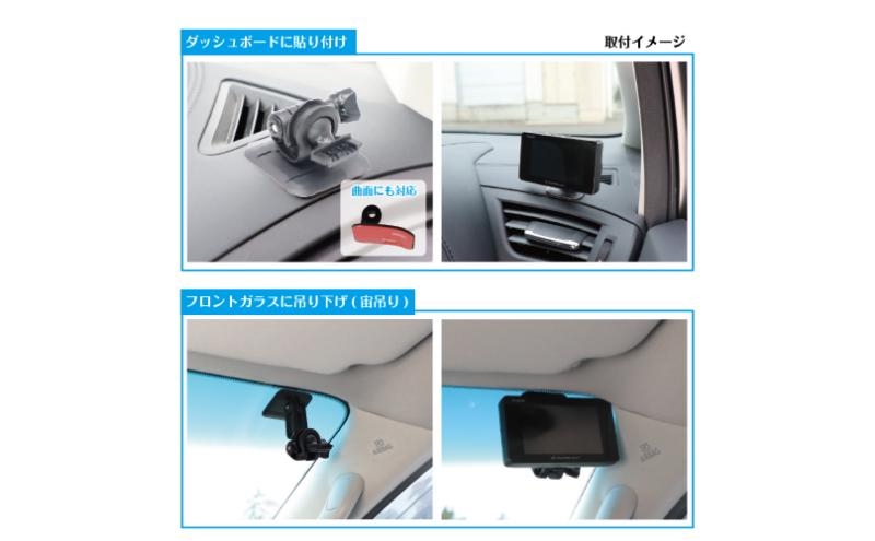 ・両面テープを使用して ダッシュボードに取付け(曲面にも対応)