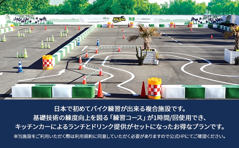 マッスルバイク ファーム 練習コース(1時間)+ランチ・ドリンク付き チケット 使用料 施設利用料 複合施設 バイク 練習 基礎技術 1時間 ランチ付 日本初 千葉市 千葉県[№5346-2465]
