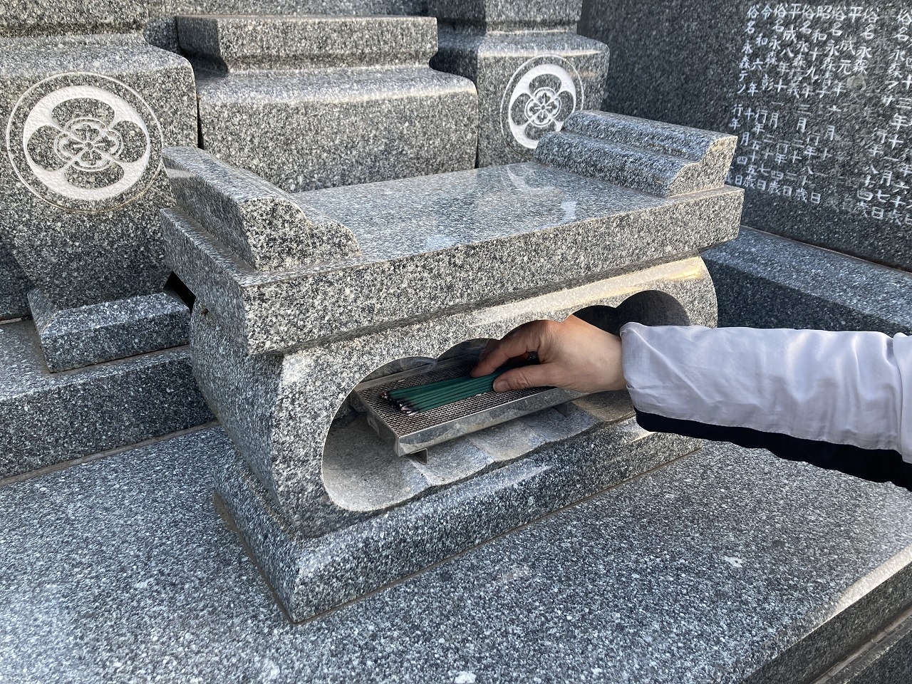 お花(1対)やお線香(1束)をお供えし、掃除が終了した旨や申込者様の思いをご先祖様や故人様にお伝えします。