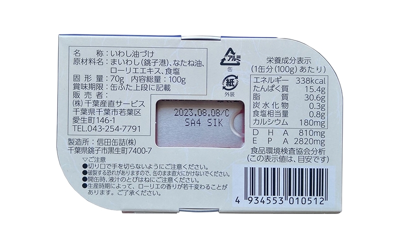 | 容量 | 銚子産 オイルサーディン 100g×10缶 【原材料】まいわし(銚子港)、なたね油、ローリエエキス、食塩 |