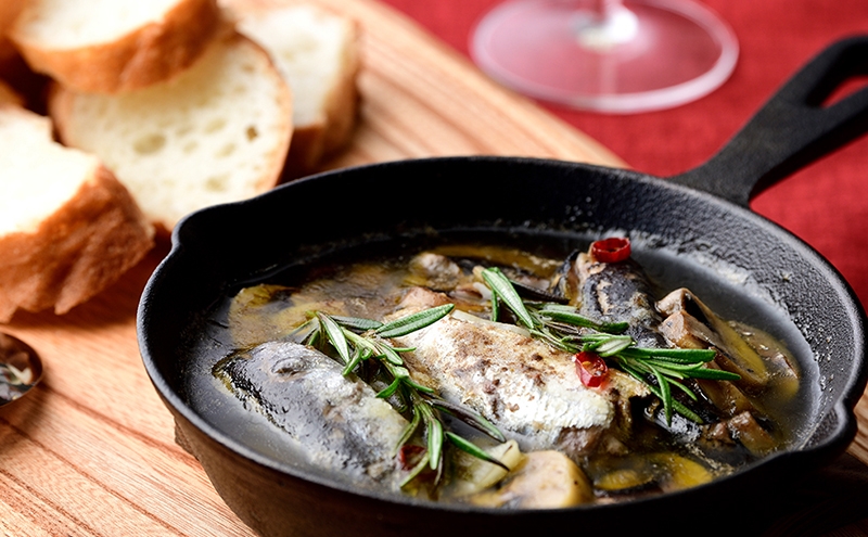 素材派の方に長く支持されている、ハーブ香る銚子産マイワシのオイルサーディンです。適度に脂ののった銚子産マイワシを使用し、国産ローリエ、韓国産天日塩、遺伝子組み換えでない菜種を原料とした一番搾り菜種油のみで丁寧に仕上げました。くせのない軽やかな油がイワシ本来の旨味を引き立て、上品で食べやすい味わいが特長です。一般的なカタクチイワシではなく、身の美味しさに優れたマイワシを使用し、1缶に約3尾前後を厳選して詰めています。素材の持ち味を活かした自然な風味はプロのシェフからも調理素材として高く評価されています。缶を開けてそのまま楽しめるほか、臭みが少なく素材感が活きているため、パスタやカナッペ、サラダ、炒め物など幅広い料理に活用できる万能なオイルサーディンです。