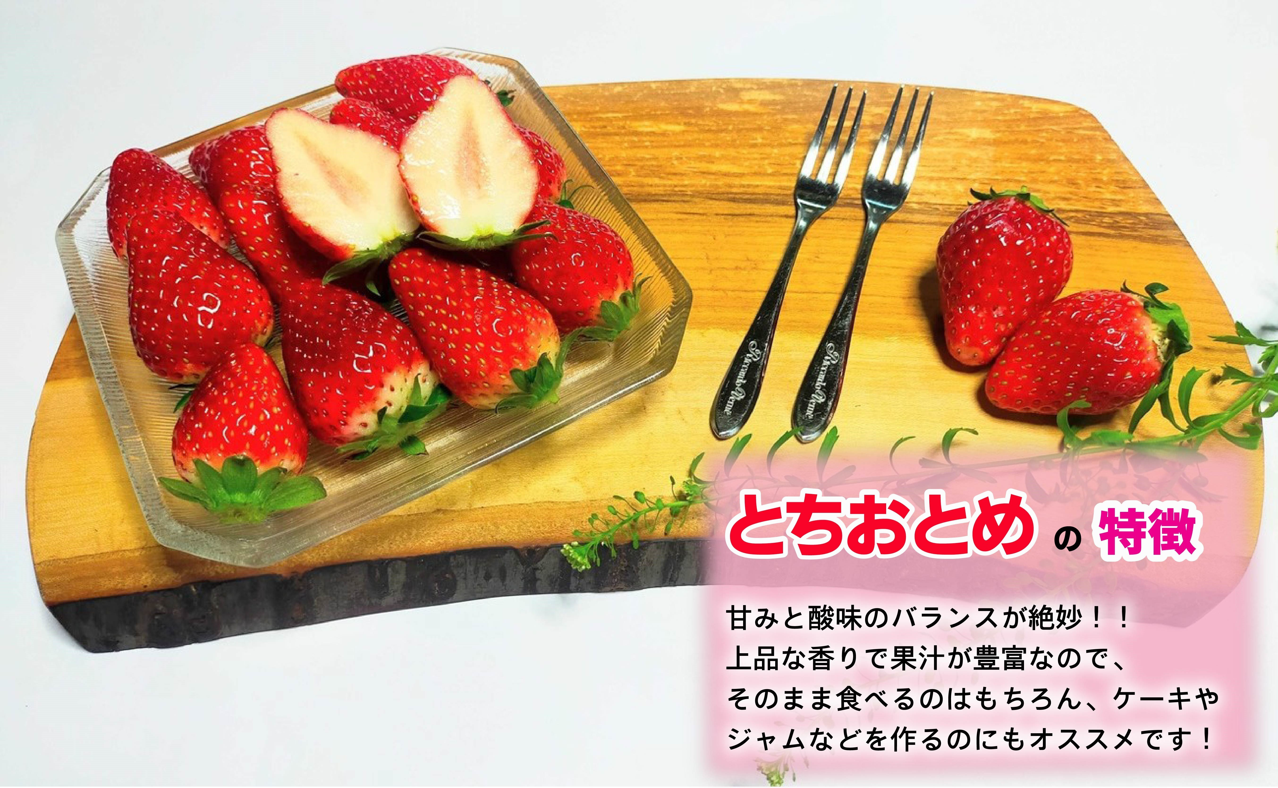 お届けする「とちおとめ」は、酸味と甘みのバランスがちょうどよく、糖度も高い色鮮やかな品種で、お子様や女性に人気です。