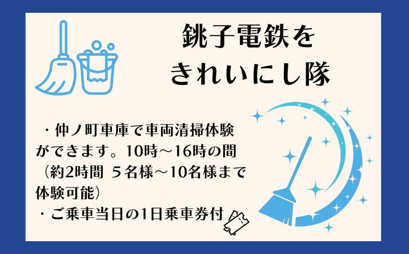 【検索kw】銚子電鉄 車両クリーニング体験 掃除 清掃 クリーニング 銚電 電車 ローカル線 鉄道ファン 駅 レア オリジナル 体験 お仕事体験 チケット 駅名 車掌 電車 鉄道 列車 サービス 鉄道マニア 記念日 イベント トラベル 乗車券 旅行 思い出 千葉県 銚子市 銚子 銚子電気鉄道株式会社