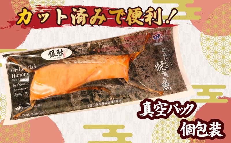 チョイスPayポイントと交換できる品 独自製法「浸透圧低温熟成乾燥Ⓡ」で旨味を凝縮させた一夜干しを丁寧に焼き上げました 熟成ひもの 焼き銀鮭 【選べる容量】 5~10パック 無添加 添加物不使用 干物 ひもの 熟成 鮭 さけ しゃけ 塩鮭 塩さけ 銀ざけ 銀さけ 銀しゃけ 焼きさけ 焼きしゃけ 調理済み 手軽 気軽 簡単 調理 焼き魚 電子レンジ 湯煎 朝ごはん 晩御飯 肴 お弁当 惣菜 おかず 料理 お取り寄せ ギフト 贈答 贈り物 水産 新鮮 海の幸 ふるさと納税 送料無料 千葉県 銚子市 甲印小西商店