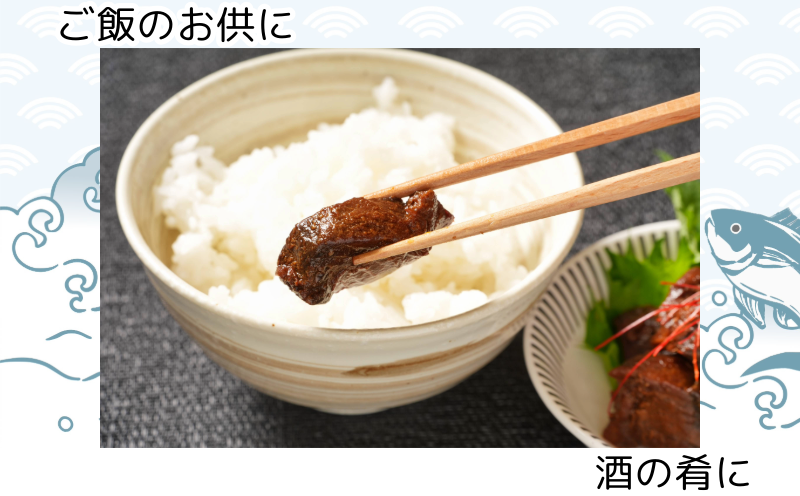 長い時間をかけて芯まで味を染み込ませたマグロは、噛むほどに旨味が溢れ出す深い味わいです。温かいご飯のお供にはもちろん、今夜の晩酌の肴としてもおすすめ!