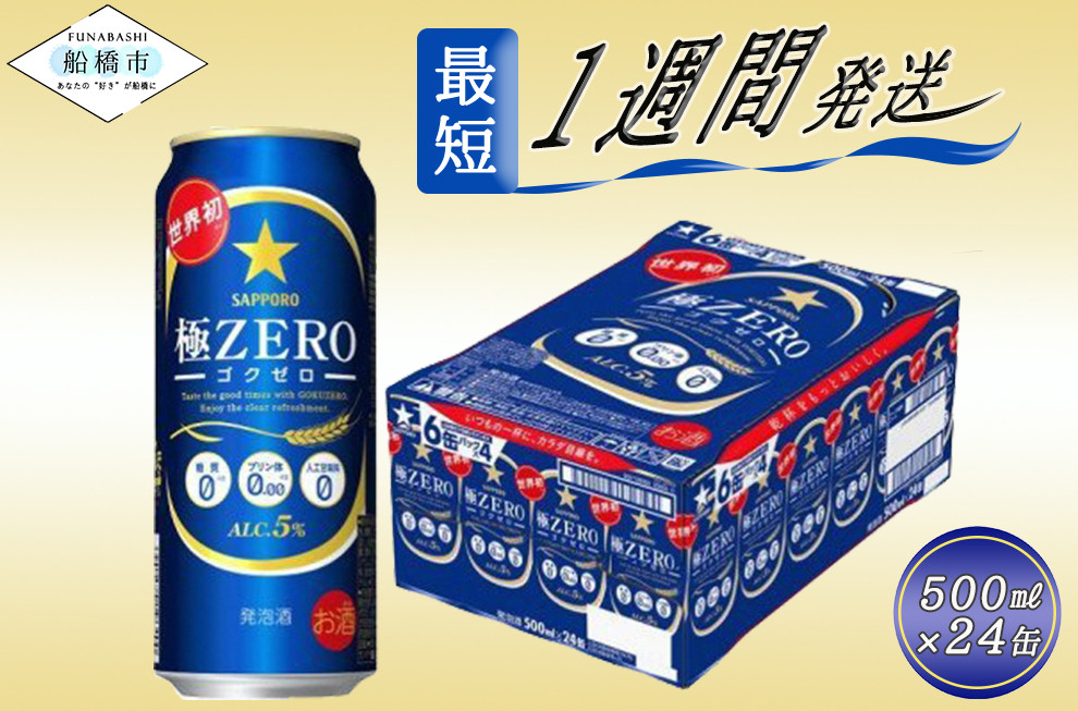 【世界初3つのゼロ】サッポロ 極ZERO・500ml×1ケース(24缶) 最短1週間で発送