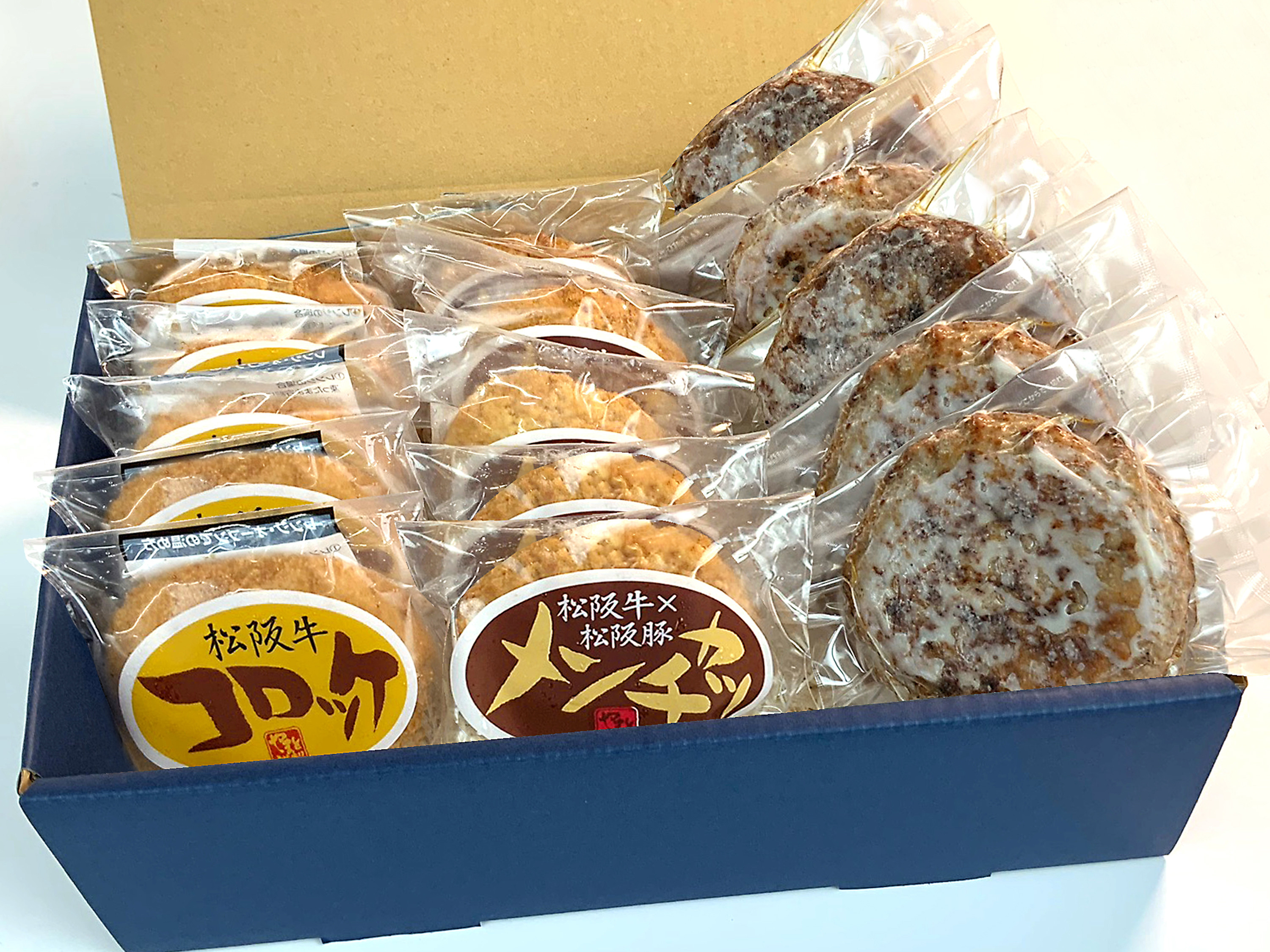 | 容量 | 松阪牛コロッケ60g×5個、松阪牛×松阪豚メンチ60g×5個、温めるだけハンバーグ150g×5個 |