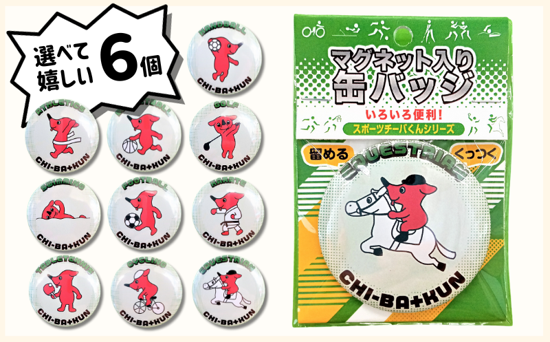 BT002 【思いやり型返礼品】スポーツチーバくん マグネット入り缶バッジ 6種(選択)セット