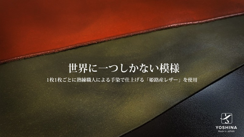 YOSHINAはより良い品の提供を心掛け、日本有数の皮革産地である兵庫県姫路で仕上げた革を採用しております。
