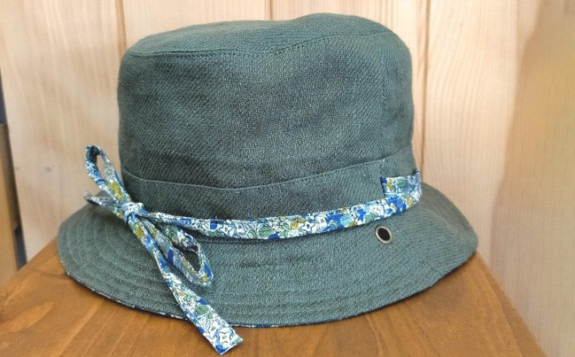 厚みのあるヘビーリネン×リバティ生地を使用したリバーシブルなバケットハット。