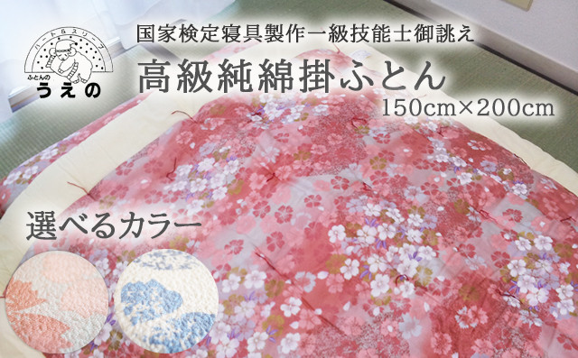 カラーが選べる!とても暖かく掛けごこちの良いお布団 国家検定寝具製作一級技能士御誂え 高級純綿掛ふとん(ピンク・ブルー)