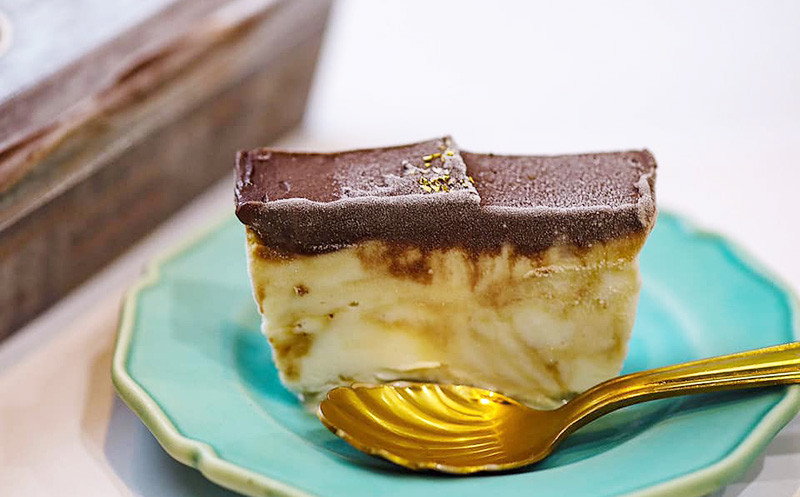 「ジェラートケーキ」将軍珈琲ジェラートとプリンス徳川カフェジェラートを2層にしたジェラートケーキは、