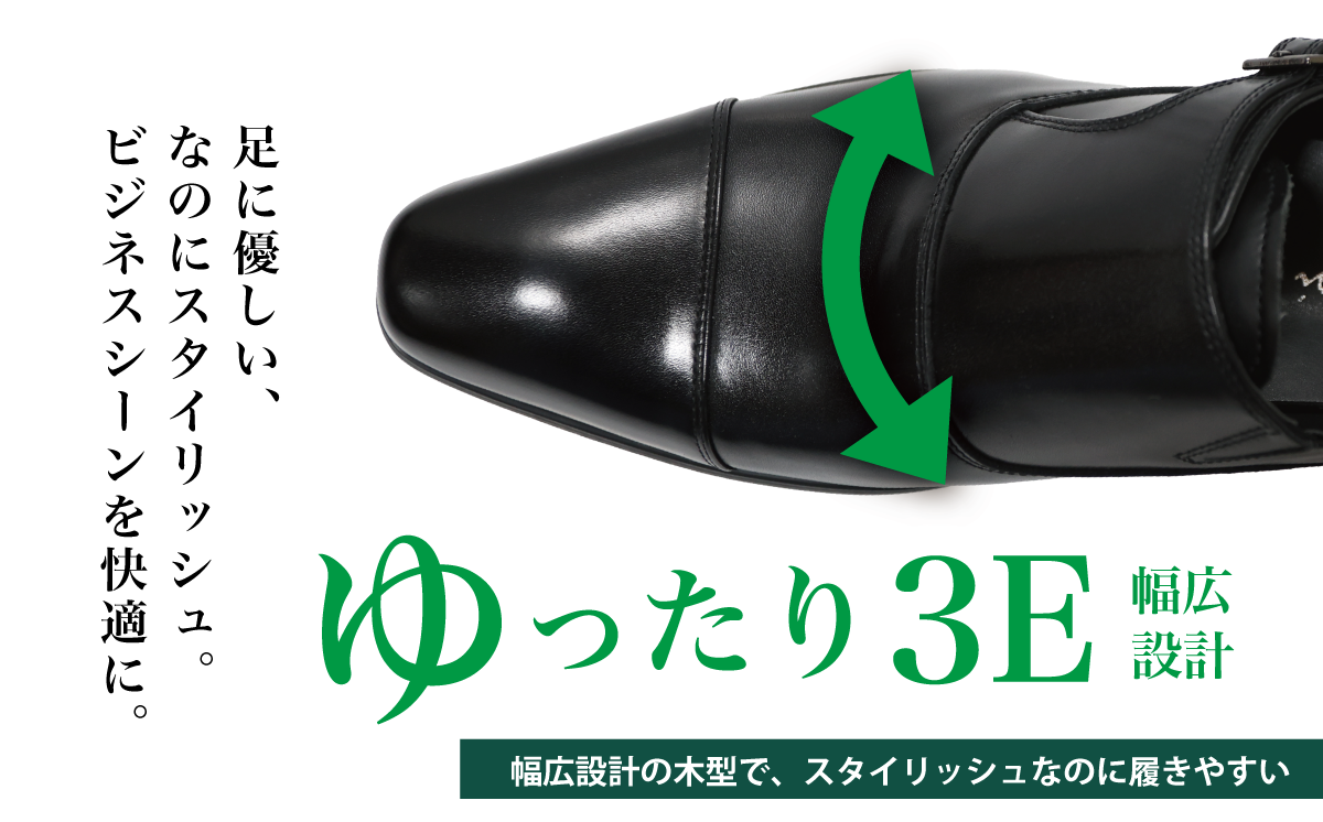 少しつま先の長いトレンドの木型を採用して日本人に合うよう幅広甲高に仕上げることにより見た目は細身ですが足を入れると非常に楽に履くことができます。