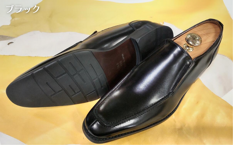 日本人に合うよう幅広、甲高の木型を採用した3EのUチップのビジネスシューズ。