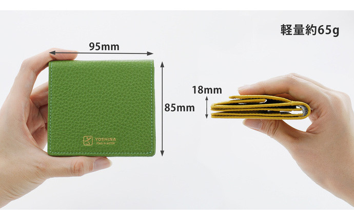 財布 二つ折り財布 小銭入れ コンパクト 85 × 95 × 18 mm 65g メンズ レディース 二つ折り 本革 小さめ 革 人気 おすすめ 黒 紺 青 黄 黄色 緑 赤 ブラック グレー ネイビーブルー オレンジ イエロー ミントブルー グリーン レッド ポケット 紙幣 カード入れ 収納 牛革 豚革 日本製 天然皮革 職人 染色 YOSHINA 使いやすい カード 硬貨 大容量 丈夫 軽い 軽量 折り返せる 松戸市 松戸 千葉県 千葉