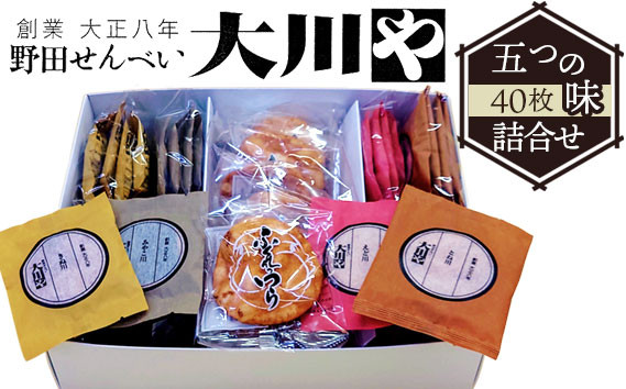 | 容量 | 野田せんべい 全40枚セット 5種類(とね川、えど川、きぬ川、みやこ川、ふくれっつら) 直射日光・高温多湿を避け、開封後は早めにお召し上がりください。 |