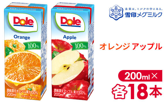 Make Every Day Shine™ ドールで輝きのある毎日を No.052-03 【雪印メグミルク】Dole LL オレンジ/アップル 100% 200ml×各18本