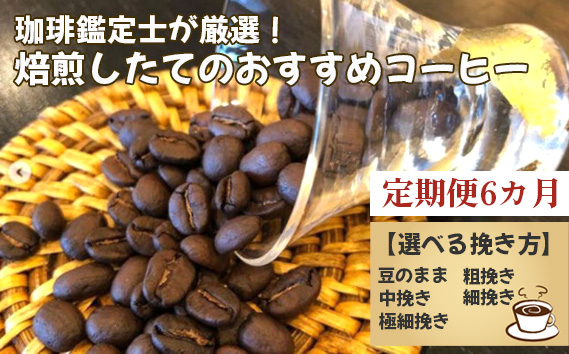 No.178 【毎月定期便6回】珈琲鑑定士が厳選!焙煎したてのおすすめコーヒー 選べる挽き方