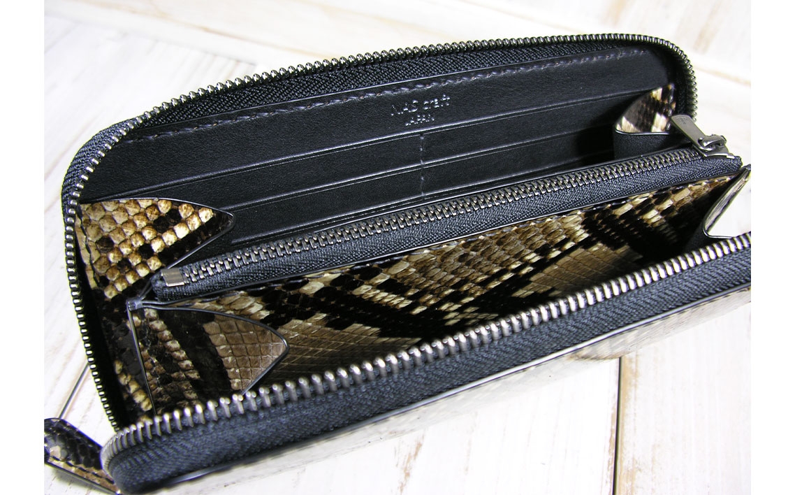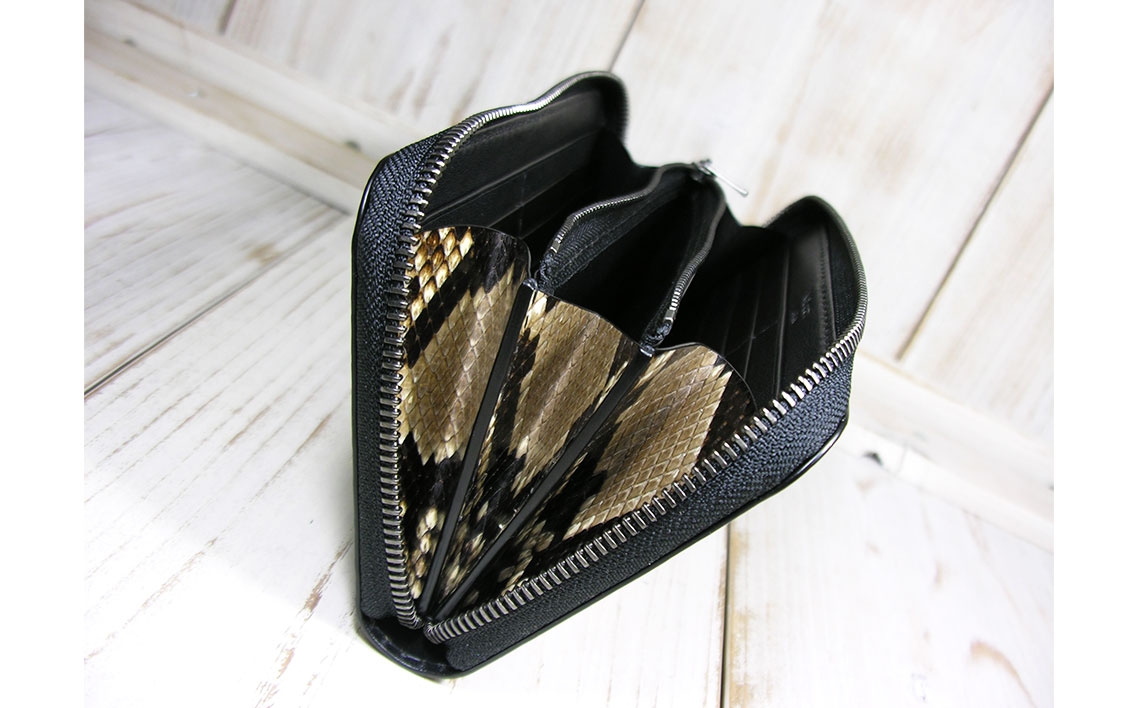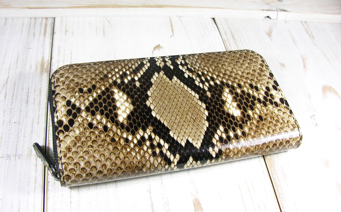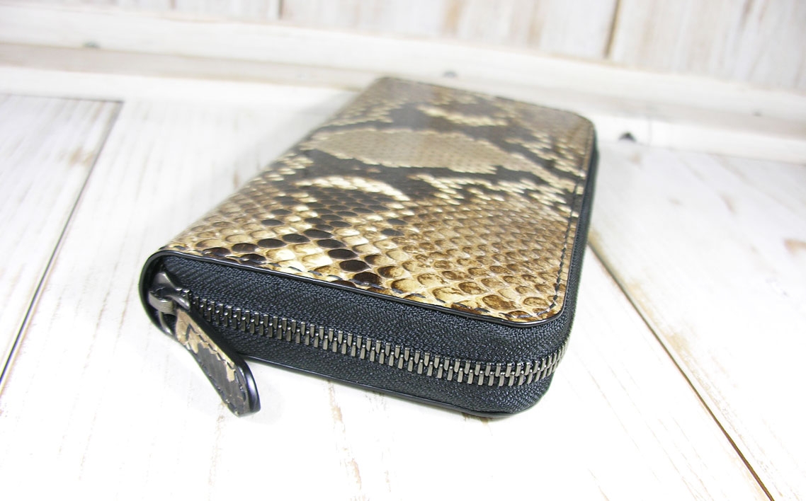 ダイヤモンドパイソンの総手縫い長財布、カード12枚収納のラウンドファスナー ダイヤモンドパイソン ファスナー長財布 / 財布 パイソンレザー ラウンドファスナー長財布 レザーウォレット 本革財布 メンズ財布 レディース財布 エキゾチックレザー カード12枚収納 YKKエクセラ ファスナー財布 ハンドメイド財布 経年変化 レザー小物 ギフト 革財布 職人手作り 千葉県 No.400
