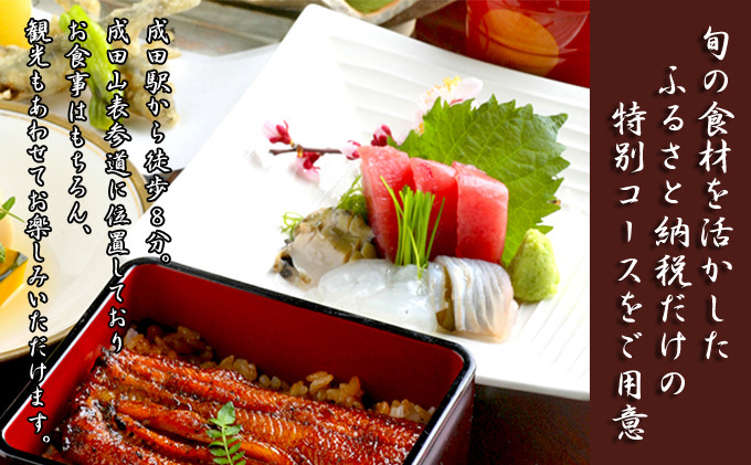 成田山門前通りに江戸中期創業した菊屋。名代の国産鰻料理の他、川魚料理、天ぷら、お刺身など本格的な日本料理が人気です。ふるさと納税者様のために特別なお献立をご案内させていただきます。 ※画像はイメージです。 ※12月1日~1月上旬のお申込(ご入金)は、1月中旬以降のお届けとなります。 ※有効期限:発行日より1年間(1/1~1/15はご使用できません) ※ご利用の3日前迄にお電話でご予約下さい。 ※お品書きにあるメニューのご注文にもご利用いただけますので、詳しくは店頭までお尋ね下さい。 ※一度に複数口のお申し込みをいただいた場合、お届け日が別々になってしまう事がありますので、ご了承ください。 ※期限迄に必ずご利用ください。期日を過ぎた食事券はご利用いただけません。 ※盗難・紛失・滅失などがあっても再発行は致しかねますのでご了承ください。 ※食事券の払い戻し等はできません。 ※受取後、すぐにお礼品をご確認ください。 事業者:有限会社 菊屋