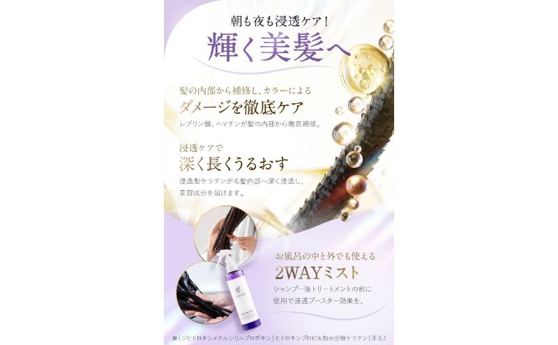 【カラーによるダメージを徹底補修】内部へ浸透して保湿、補修ミストタイプ。ダメージ補修を行いシルクのようにサラっとまとまる。柔らかく指通りの良い髪へと導きます。