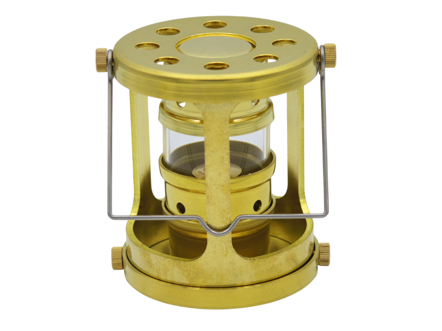 キャンプの荷物を圧迫せず、どこへでも一緒に持っていけます。高級感あふれる真鍮ボディが使うほどに深みを増すアンティーク調の風合いへと変化していきます。経年変化を楽しみながら、自分だけの特別なランタンに育ててください。ネジ1本に至るまで完全分解可能な構造。シンプルな形状で、手の届かない箇所がないためお手入れも簡単です。くすませて渋みを出すもよし、磨いて常にピカピカを保つもよし。本体支柱は、日本の伝統技法「へら絞り」によって成形。熟練職人の手から生まれる美しいヘラ目は、どれ一つとして同じものはありません。塑性変形で成形するため鍛造に匹敵する強度を持ち、世代を超えて使える堅牢性。まさに一生モノのギアです。パラフィンオイル大さじ2.5杯(約40ml)で最長8時間点灯。