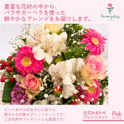 生花お任せアレンジメントM ピンク系 お祝いやお誕生日におすすめ【1636488】