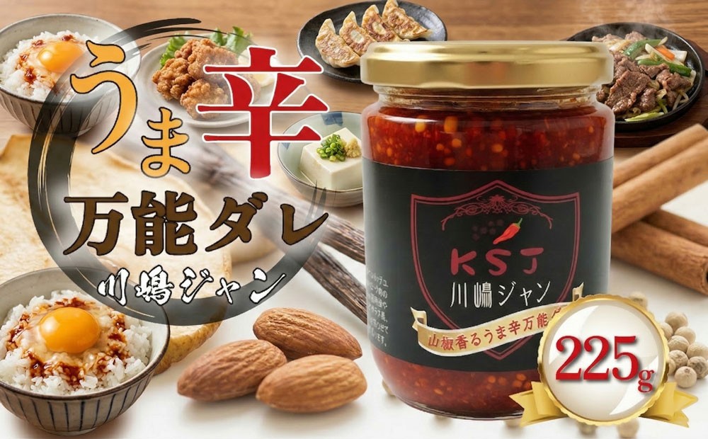 辛すぎない、なんにでも合う山椒香るうま辛万能ダレをお楽しみください! 山椒香る うま辛万能ダレ 225g×2個 川嶋ジャン ソース 山椒 調味料 万能だれ 辛味タレ 旨辛 万能ソース そーす 中華 韓国 料理 調味料 唐揚げ 餃子 冷奴 トロロオクラ お刺身 ラーメン 麻婆豆腐 焼き肉等 TKG MIYABI 九十九里 フカヒレハウス 千葉 東金