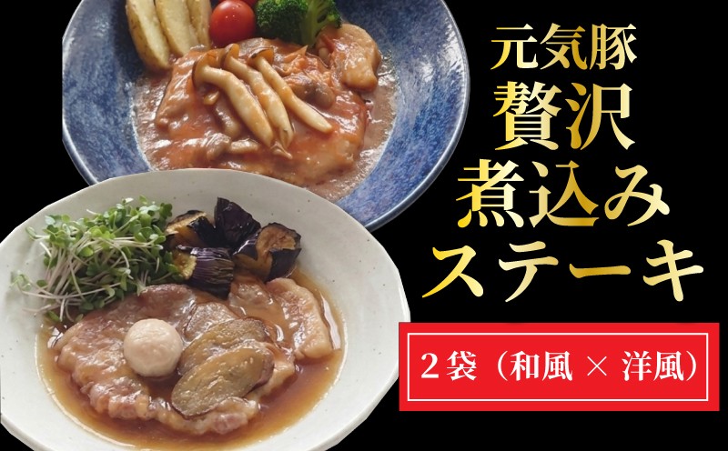 和洋2種の味わい堪能セット!厚切り150g×2袋。常温保存OKな贅沢ポーク。 元気豚 贅沢 煮込みステーキ 2種の味わい堪能セット 豚肉 ポーク ブランド豚 国産 ステーキ 厚切り 柔らか 贅沢 レトルト 和風 洋風 常温保存 長期保存 ギフト プレゼント 厚切り 惣菜 おかず こだわり 煮込み 簡単調理 個包装 湯煎 株式会社味良 千葉県 東金市