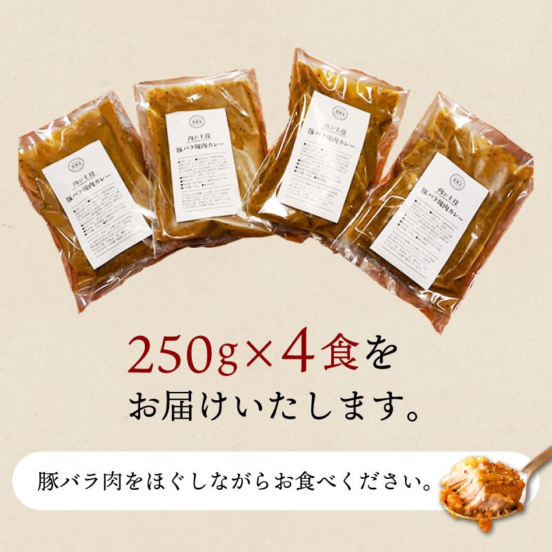食べ応え抜群!豚バラの塊肉がごろっと入ったポークカレー 豚バラ 塊肉 カレー 4食 入り ポークカレー 冷凍カレー 豚肉 豚 ぶた肉 ぶた 国産 千葉県 産 千葉 県産 ポーク 冷凍食品 冷凍 家庭用 簡単調理 こだわり 贈答 ギフト プレゼント 千葉県 旭市