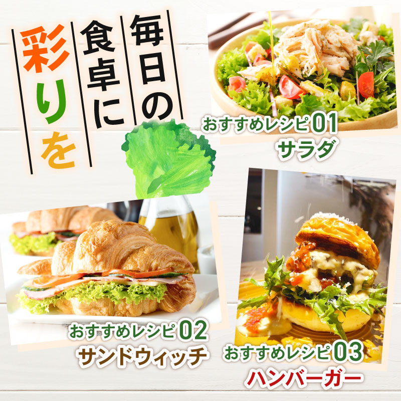そのままサラダにしたり、サンドウィッチ、トルティーヤ、生春巻き、しゃぶしゃぶなど、さまざまな料理に活用できます。