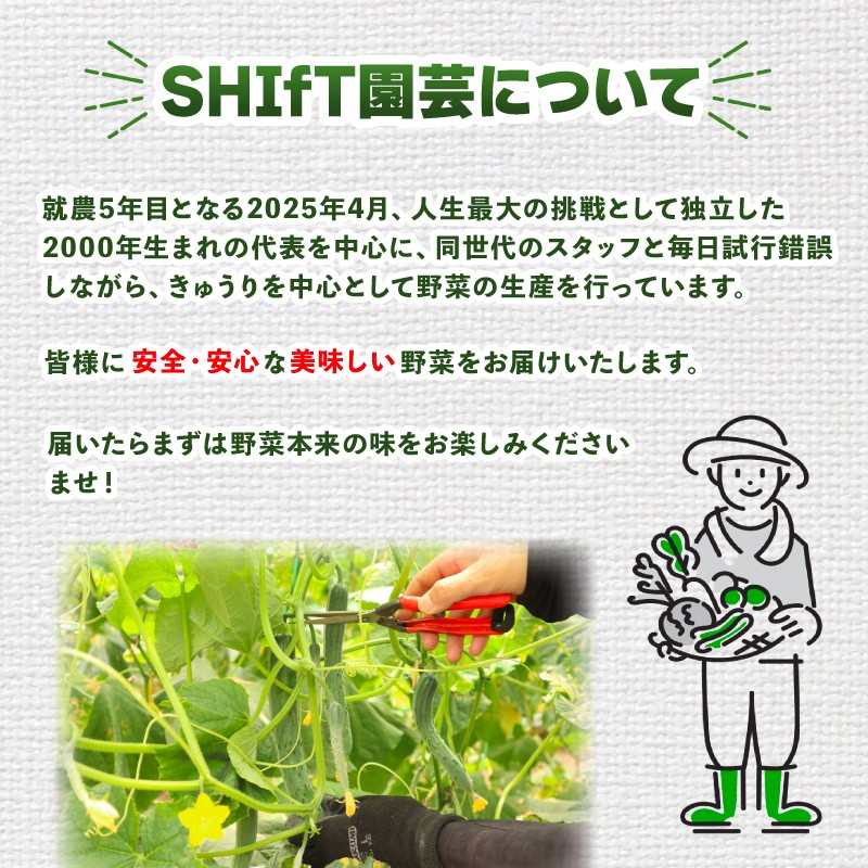 2025年4月に独立した2000年生まれの代表を中心に同世代のスタッフと毎日試行錯誤しながらきゅうりを中心とした野菜生産を行っている農園です。