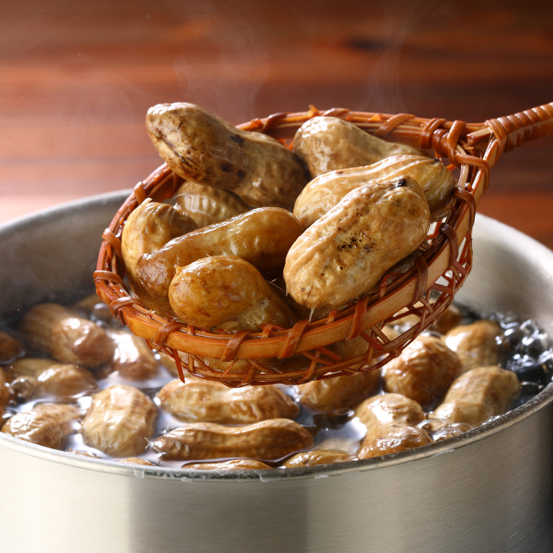 冷凍保存された製品やレトルト調理されたゆで落花生は流通していますが、やはり茹でたての落花生がみずみずしさ、食感、風味が格別です。