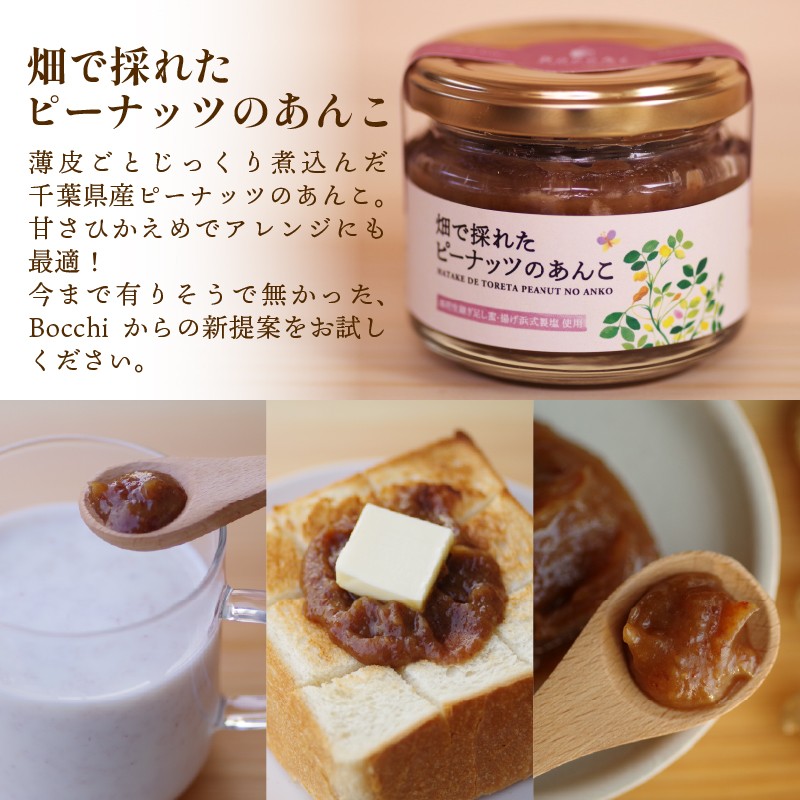 「ピーナッツのあんこ」は甘さ控えめ、薄皮ごとじっくり煮込みました。毎日の食卓をピーナッツでぬりかえよう。